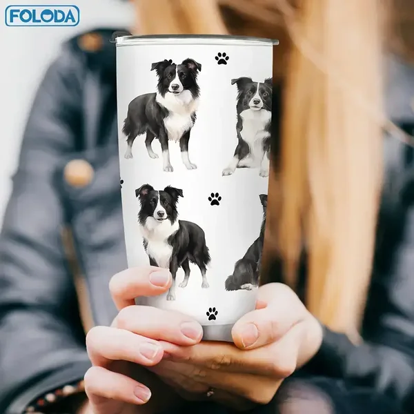 Border collie Foloda 20oz Stainless Steel Insulated Travel Tumbler with Lid